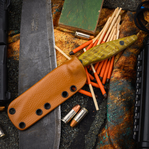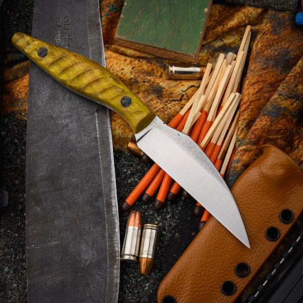 Handle - textured and stabilized Birdseye Maple with micarta pins