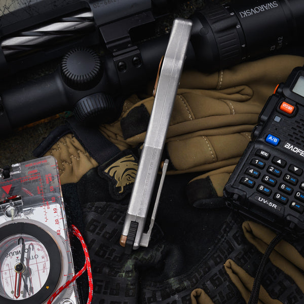 Handle - 5 9/16” stonewashed Royalloy stainless steel with 182 chromium copper charging handle and copper hardware