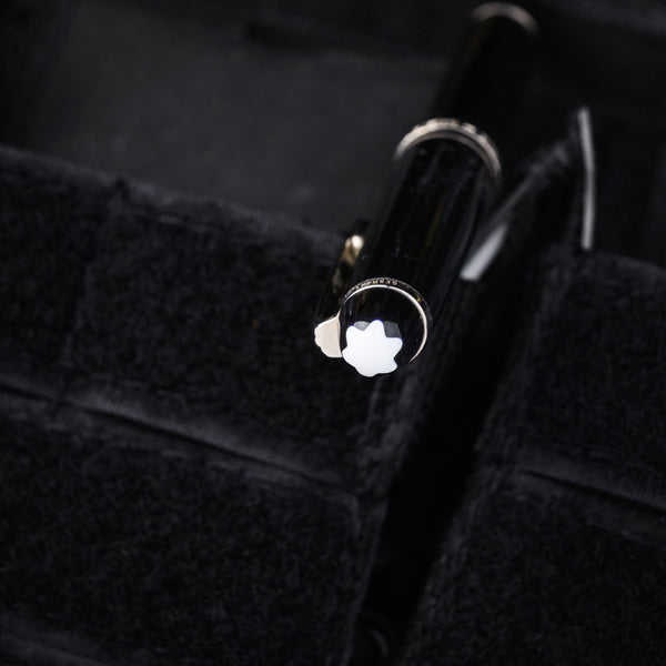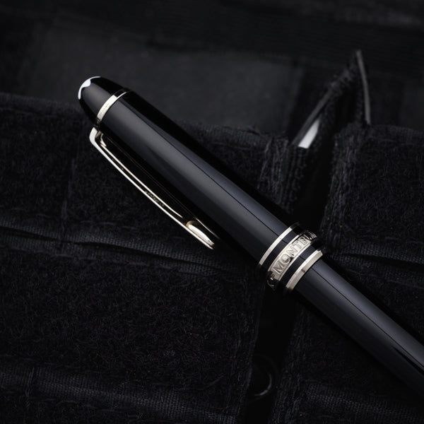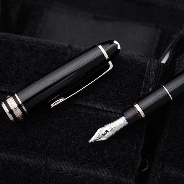 The Mont Blanc Meisterstuck is a classic fountain ink pen featuring blue ink with a removable screw off cap, black body, and stainless accents. Handmade in Germany, the Meisterstuck is an iconic writing instrument and a timeless addition to any collection.